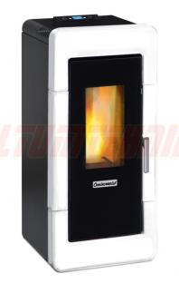 Granulu kamīns CentroPelet ZVC14 B, ar keramisko paneli un centrālapkuri, balts, Centrometal