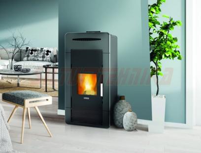 Granulu kamīns CentroPelet ZVC14 K, ar keramisko paneli un centrālapkuri, melns, Centrometal