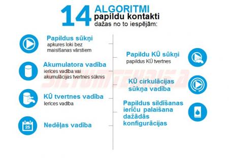 Iespēja savienot ar trīs istabas regulatorus ar standarta komunikāciju (divu stāvokļu, ieslēgta / izslēgta);