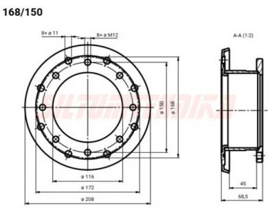 Крепление – количество отверстий: 8 x 11 / количество отверстий 8 x M12;